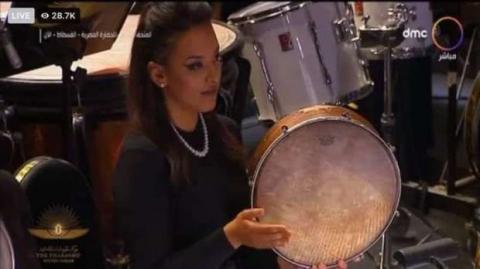 عازفة الدف تقى على ابنة فنان معروف تخطف الأنظار بحفل نقل المومياوات