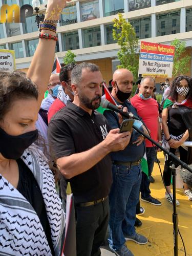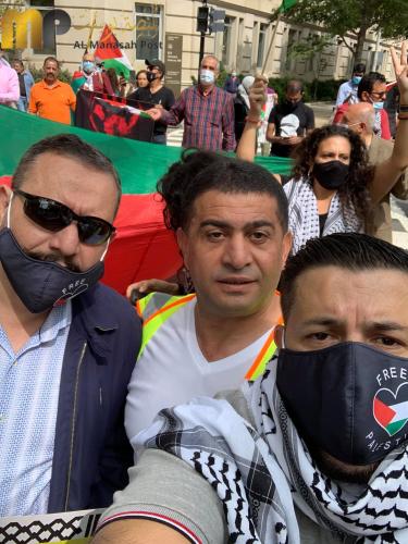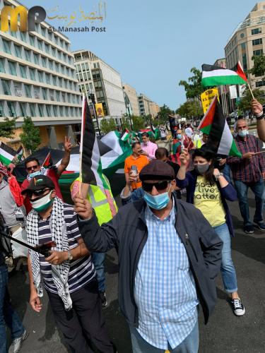 بدعوة من المؤسسات والمنظمات الفلسطينية والعربية الامريكية والمناصرين للقضية، اقيمت مسيرة احتجاج في العاصمة الأمريكية " واشنطن" بالتزامن مع مراسم توقيع اتفاقية التطبيع بين الامارات والبحرين وما يسمى دولة ( اسرائيل) في البيت الابيض برعاية امريكية وبحضور الرئيس الامريكي دونالد ترامب. وقد شارك بضعة مئات في الوقفة وجابوا الشوراع حتى وصلوا الى خلف حديقة البيت الابيض اثناء وجود الوفود وكان الحناجر تهتف وبصوت عالي لفلسطين وتدين وتشجب وباشد العبارات ما اقدمت عليه دولة الامارات والبحرين واصفة هذه الخطوة بانها خيانة وخدمة مجانية من اجل تجميل صورة الكيان الصهيوني الذي يشن حربا ضروسا ضد الشعب الفلسطيني الصامد في ارضه، وينتهك كل محرم ومقدس وعلى رأسها اولى القبلتين وثالث الحرمين الشريفين " المسجد الاقصى المبارك"، وفي نفس الوقت شاءت الاقدار عندما كان يهم الوفد الاماراتي للدخول الى البيت الابيض وجود بعض النشطاء الامريكين من اصل فلسطيني فقاموا بتوبيخهم واصفين اياهم بالخونة والتجار والجواسيس ولم ينبسوا ببنت شفة، بقوا مطاطئي الرؤوس بوجود الشرطة الأمريكية. وقد القيت في هذه الوقفة عدة كلمات لممثلي المؤسسات والمنظمات بوجود كثيف للاعلام الامريكي، و العربي مثل الجزيرة والميادين وتلفزيون فلسطين. وقد ادان المتحدثون جميعا هذه الخطوة التي اقدمت عليها كلا من الامارات والبحرين ووصفوها بانها طعنة من الخلف بحق الشعب الفلسطيني وخدمة مجانية للاحتلال، ووصمة عار على جبينهم، وخيانة لدماء شهداء فلسطين والامة العربية
